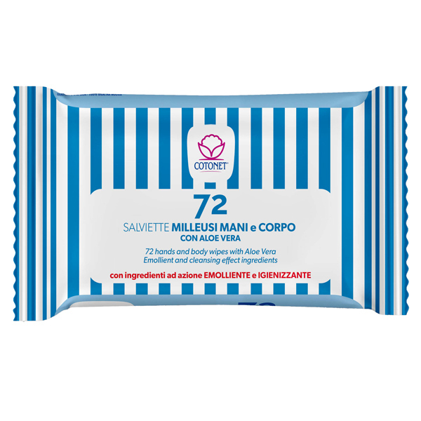 Salviette milleusi rinfrescanti ultrasoffici, non contengono alcol, dermatologicamente testate. Confezione richiudibile.