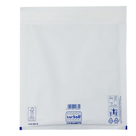 Sacco in carta bianca certificata FSC imbottito con pluriboll. Polietilene a bolle. Termosaldato su tre lati.Lembo autoadesivo protetto da Strip Dati tecnici: Modello: E Formato: 24X32cm Formato interno : 21X26cm Cartone certificato FSC.