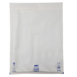 Sacco in carta bianca certificata FSC imbottito con pluriboll. Polietilene a bolle. Termosaldato su tre lati.Lembo autoadesivo protetto da Strip Dati tecnici: Modello: K Formato: 37X55cm Formato interno : 34X48cm Cartone certificato FSC.