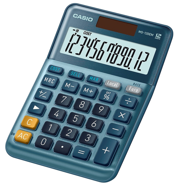 Ampio display a 12 cifre con indicazione dei commando e separatore delle migliaia. Doppia alimentazione: solare / batteria con selezione automatica della fonte di energia. Dimensioni: 126 x 31 x 179mm - 180gr. Funzioni: - Calcolo della % avanzato, grazie alla tecnologia esclusiva CASIO, che mostra il valore assoluto della % prima di aggiungerlo alla base - Tasti di Costo/ Vendita /Margine - Calcolo del Mark Up - 3 tasti di memoria - Euroconvertitore - Calcolo delle costanti - 3 testi di memoria - Tasto backspace per cancellare l'ultima cifra - +/- tasti per il cambio di segno - Tasto doppio 00.