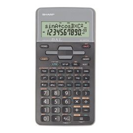 Calcolatrice scientifica Sharp EL-531TH GRIGIA. Calcolatrice con 273 funzioni matematiche. Idonea per la scuola o l'ufficio, di facile lettura. Ideale per la Scuola Secondaria di II grado e l'Universita'. Con un Display LCD a 2 linee. Presenti 10+2 cifre. Il display ordinato a 2 righe permette di controllare e modificare i calcoli precedenti. Operatori logici (AND, OR, NOT, NEG, XOR). Statistiche di una o due variabili, 6 modelli di regressione, Media, deviazione standard, Combinazione, variazione, fattoriale, Numeri casuali. Funzioni matematiche 1/x, x^2, ?, %,. Funzioni trigonometriche e iperboliche, Unita' angolari DEG/RAD/GRAD, Conversioni sessagesimali e decimali, Conversioni di coordinate cartesiane e polari. Calcoli nei sistemi DEC, BIN, OCT, HEX, PEN. Comprese una copertura rigida in plastica che protegge la calcolatrice da graffi e cadute. D.A.L. (Direct Algebraic Logic) avanzato. Display LCD: 2 linee. Capacita' dello schermo: 10 digit. Colore Grigio. Tipologia Calcolatrici scientifiche. Dimensione 80x161x15mm (LxHxP). Peso 115gr. Alimentazione Batteria ministilo (1xAAA). Funzioni 273. Numero cifre 12. Garanzia 2 anni. Codice produttore EL531THBGY. Marca Sharp.