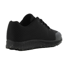 Scarpa antistatica (ESD) con suola antiscivolo testata per scivolamento SRA e SRB e su superfici in acciaio e in ceramica. Plantare antistatico confortevole e rimovibile che offre vestibilita', orientamento e assorbimentoottimale degli urti nel tallone e nell'avampiede. Tomaia traspirante che aumenta la regolazione dell'umidita' e della temperatura per un comfort maggiore. Suola in gomma con tecnologia Oxytraction che rende la scarpa antiscivolo anche su superfici bagnate rispettando standard SRC (SRA+SRB). CE.