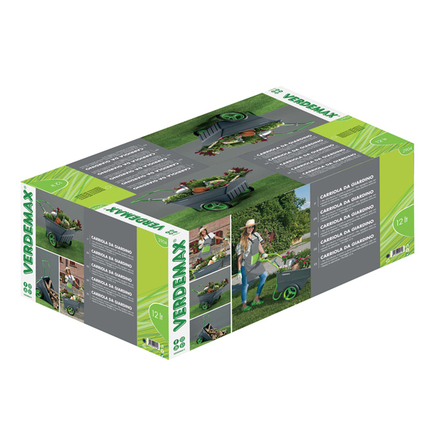 Carriola del design unico, utilizzabile con una sola mano, versatile e ribaltabile per una massima facilita' di carico e scarico. Telaio verniciato a polveri epossidiche e ruote in EVA semipneumatiche. Capacita' 110lt. Dimensioni L59 x P 120 x H 53cm.