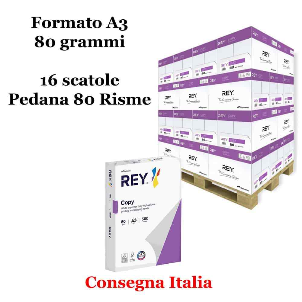 REY COPY. Cartiera "International Paper".Carta bianca per stampanti multifunzione ad altà velocità, 80 grammi, formato A3. Il suo punto di bianco migliorato garantisce contrasti più nitidi, riducendo l'affaticamento degli occhi e migliorando la leggibilità. Certificazione "EU Ecolabel", "FSC", "Colorlok". Scatole da 5 risme. Pedana da 16 scatole - 80 Risme. Rey Copy - REYA380-85