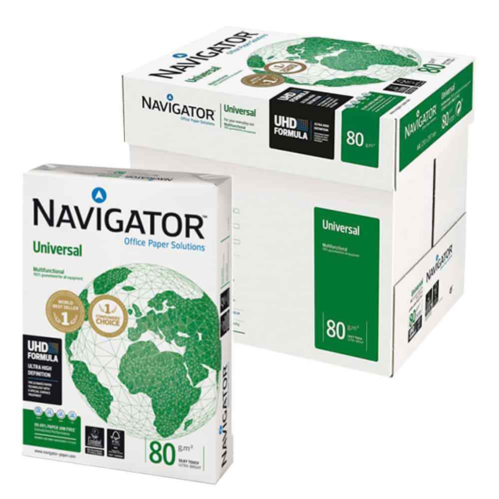 NAVIGATOR UNIVERSAL. Cartiera "The Navigator Company"Carta bianca per stampanti multifunzione, 80 grammi, formato A3. Certificazione "EU Ecolabel" e "PEFC". Scatole da 5 risme. Pedana da 40 scatole - 200 Risme. Navigator - NAVA3-200