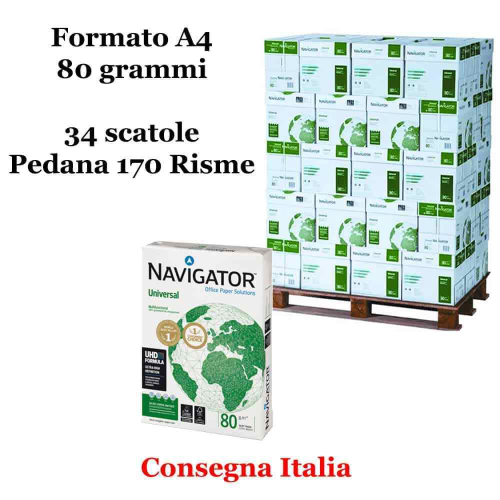 NAVIGATOR UNIVERSAL. Cartiera The Navigator Company. Carta bianca per stampanti multifunzione, 80 grammi, formato A4. Certificazione EU Ecolabel e PEFC. Scatole da 5 risme. Pedana da 34 scatole - 170 Risme. Navigator - NAVA4-170