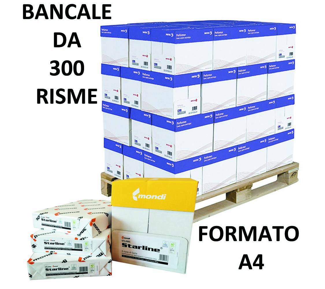 Carta fotocopie A4 da 80gr. Numero fogli per risma 500 di colore bianco. Carta Starline. Idonea alla stampa laser e inkjet. Risma da 500 fogli. Tipologia di prodotto carta per fotocopie. Tecnologia stampa laser e inkjet. Ottimo grado di bianco. Carta in risme. Ha un ottimo rapporto qualita' e prezzo. Marca starline. Pedana da 60 scatole - 300 Risme.