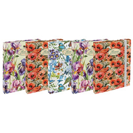 Cartella progetti con elastico linea pigna nature flowers. Struttura in cartone da 900gr, spessore 1,5mm, rivestito con carta uso mano stampata a motivi floreali. Dimensioni 26x34cm. Dorso 3cm. Ideale per archiviare appunti e documenti.