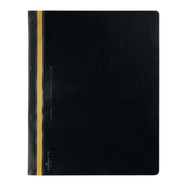 Cartelline nero per rilegatura rapida mediante punti metallici. In pvc con copertina frontale trasparente e posteriore colorata. I punti vengono coperti dalla banda adesiva colorata posta su ambo i lati della cartellina. Dotate inoltre di asole per l'archiviazione in raccoglitori ad anelli. Capacita' da 1 a 30 fogli A4. Formato utile 21x29,7cm.