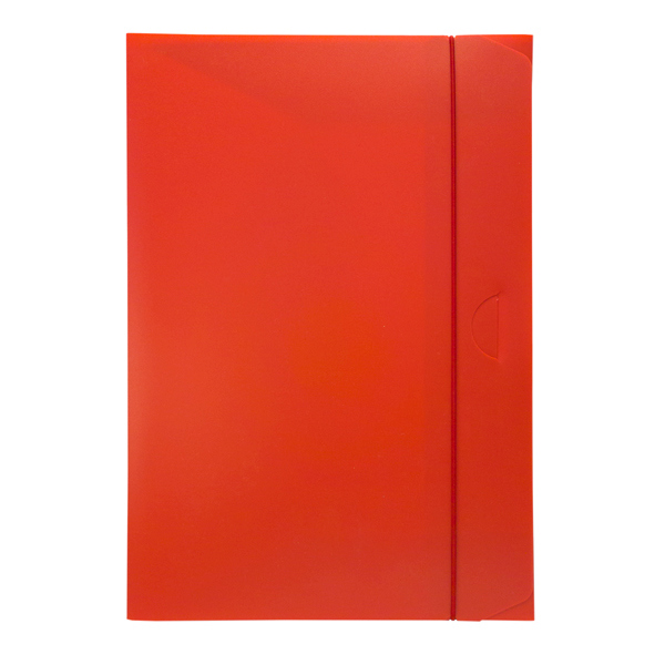 Porta progetto rosso realizzate in pp da 0,6mm, indeformabili. Doppio incastro laterale e chiusura con elastico. Formato utile 23,5x34,5cm. Dorso 3cm.