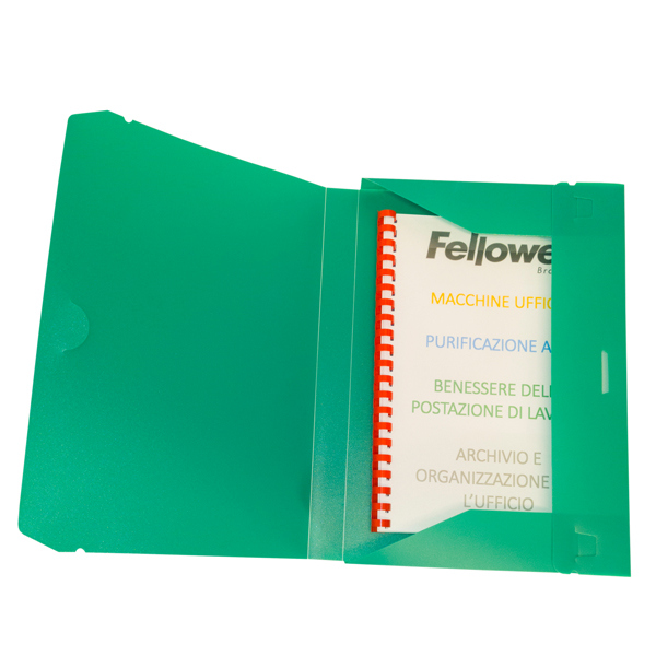 Porta Progetto verde realizzate in PP da 0,6mm, indeformabili. Doppio incastro laterale e chiusura con elastico. Formato utile:23,5x34,5cm. Dorso 3cm.