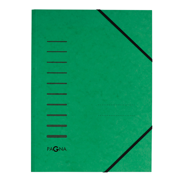 Cartellina, per documenti in formato A4, in robusto cartone pressato da 335gr, con elastico angolare nero per l'archiviazione sicura dei documenti senza fori. Diverse opzioni di piegatura in funzione del volume di fogli, area per marcatura personalizzata.