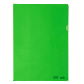 Cartelline a L realizzate in polietilene trasparente con piu' del 30% di polietilene "I'm green bio-based" una materia prima rinnovabile, totalmente riciclabile, la cui produzione deriva dalla lavorazione della canna da zucchero che, rispetto a quella dei polimeri di origine fossile, contribuisce alla riduzione di CO2 nell'atmosfera. L'origine rinnovabile e' scientificamente verificata (in laboratorio) secondo il metodo standard ASTM D6866. Amiche dell'ambiente, 100% riciclabili. Aperte sui due lati, finitu