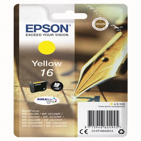Cartuccia Inchiostro Originale giallo Epson 16 - Epson nr 16 - Epson 16 gialla ( C13T16244012. 3,1 ml ) Penna e Cruciverba