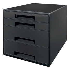 Questa robusta cassettiera con finitura opaca e' composta da 4 cassetti (2 grandi e 2 piccoli) per documenti in A4 Maxi. Realizzata con almeno il 90% di plastica riciclata post-consumo e' a zero impatto climatico grazie alla compensazione della CO2, riciclabile al 100% e con certificazione ambientale Blue Angel.
