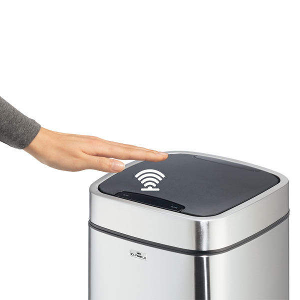 I cestini con tecnologia a sensori consentono di gettare i rifiuti senza entrare a contatto con il contenitore . Capacita': 12 litri. Dimensioni: 24 x 24 x 43 cm (L x P x H). Il coperchio si apre grazie al sensore di movimento e si chiude automaticamente, in alternativa puo' essere aperto o chiuso manualmente tramite i tasti Apri/Chiudi. Cestino interno estraibile con maniglia e anello ferma sacco . Coperchio rimovibile per un facile smaltimento dei rifiuti e sostituzione del sacco. Il coperchio ha un'apertura e chiusura silenziosa e rallentata. Realizzati in acciaio inossidabile con rivestimento che previene ditate e impronte. Base antiscivolo e dalla forma quadrata salvaspazio. Alimentato da 4 batterie AA (non incluse) .