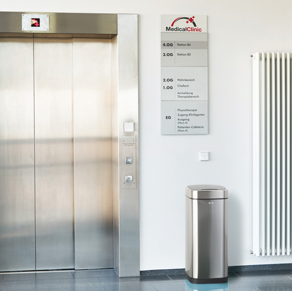 I cestini con tecnologia a sensori consentono di gettare i rifiuti senza entrare a contatto con il contenitore . Capacita': 35 litri. Dimensioni: 30,5 x 30,5 x 69 cm (L x P x H). Il coperchio si apre grazie al sensore di movimento e si chiude automaticamente, in alternativa puo' essere aperto o chiuso manualmente tramite i tasti Apri/Chiudi. Cestino interno estraibile con maniglia e anello ferma sacco . Coperchio rimovibile per un facile smaltimento dei rifiuti e sostituzione del sacco. Il coperchio ha un'apertura e chiusura silenziosa e rallentata . Dotati di rientranza sul retro per un facile trasporto . Realizzati in acciaio inossidabile con rivestimento che previene ditate e impronte. Base antiscivolo e dalla forma quadrata salvaspazio. Alimentato da 4 batterie AA (non incluse) .