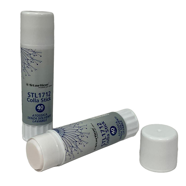 Colla in Stick bianca da 40gr permanente STARLINE. Colla stick Starline permanente bianca, atossica senza solventi. Lavabile con acqua. Idonea per incollare carta, cartoncini, fotografie, stoffe e creazioni decorative. Colla bianca a base d'acqua. Ideale per la scuola e l'ufficio. Starline offre diverse colle. Eccezionale adesivita' sia su carta tradizionale che su carta trattata. Chiusura tappo ermetica. Tubetto cilindrico. Odore neutro. Tipologia prodotto: colla stick. Colore: bianco. Contenuto: 40gr. Codice produttore: STL1712. Marca Starline.