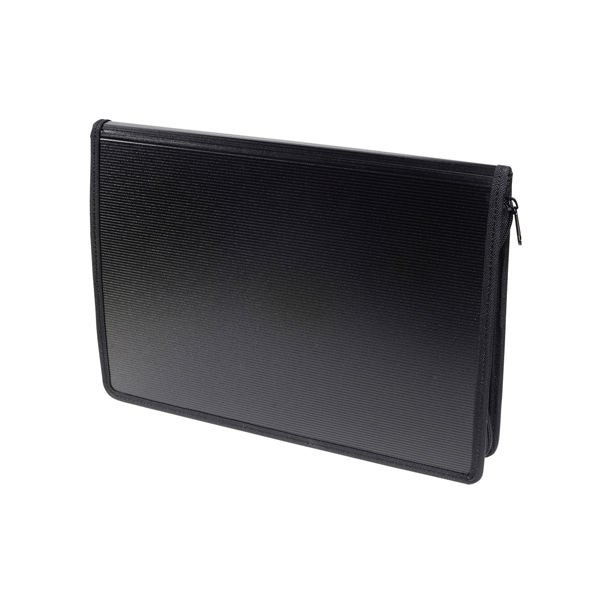 Converenziere Exawallet con maniglia e chiusura a zip. Dotato di uno spazio classificatore, buste a zip, scomparto imbotito per tablet, spazio per portapenne. Perfetto per prendere appunti, archiviare documenti forati nella parte raccoglitore o diversi documenti nella parte classificatore, oltre a tutti oggetti di cancelleria che si possono inserire nelle diverse tasche. Ideale per trasportare documenti forati o non-forati. Formato esterno 26,5x34cm.
