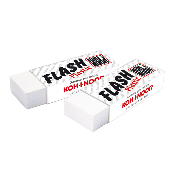 Gomma in vinile bianco ideale per matita e a tutti i tipi di carta. Ogni gomma e' confezionata singolarmente con pellicola di sigillo.