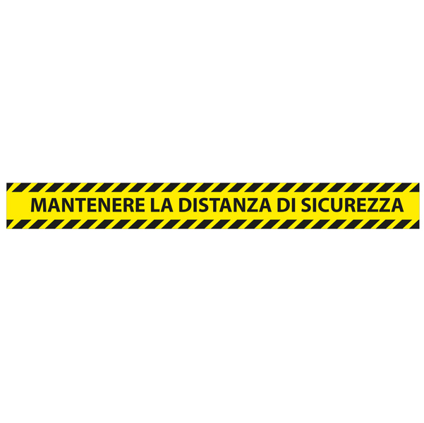 Adesivo per pavimento in PVC 165mg2, patinato, completo di stampa "MANTENERE LA DISTANZA DI SICUREZZA". Dimensioni: L 90cm - H 10cm. Confezione da 5 pezzi.
