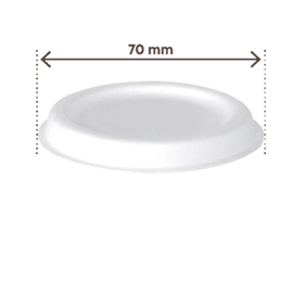 Coperchio in fibra di canna da zucchero per coppette porta salse da 60ml cod. 100121. Riscaldabile in forno fino a max 180 gradi C per 10 min e in microonde a max 800W per 4 min. Utilizzabile in freezer. Idoneo contatto alimenti secondo il regolamento CE n gradi 1935/2004 e successivi aggiornamenti. Prodotto conforme ai requisiti della Direttiva 94/62/CE per quanto riguarda il contenuto dei metalli pesanti. Non contiene sostanze sottoposte a restrizioni nelle legislazioni attualmente in vigore sui Food Contact Material. Dimensioni: diametro 7cm - H 0,8cm Peso: 3gr.