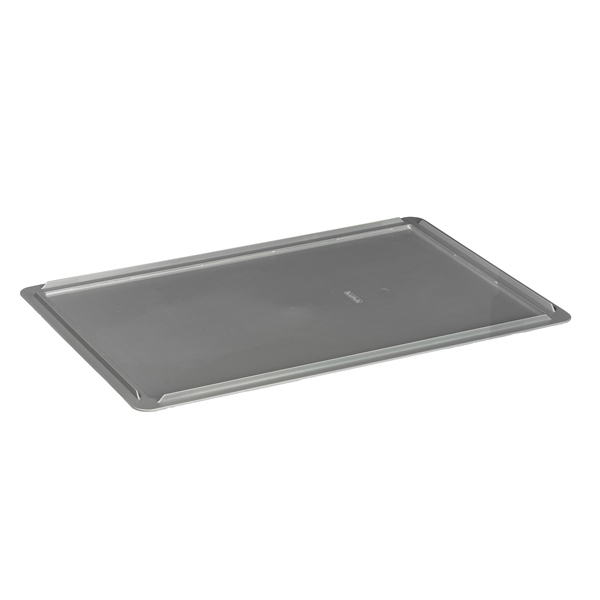 Coperchio per cassa industriale Europa 60x40 (cod. 4417-GRI - 4422-GRI - 4432-GRI). In PP da riciclo post-industriale certificata PSV (Plastica 2 gradi vita) per il settore industriale ed utilizzi professionali. Colore grigio. Dimensioni: L60 x P40.