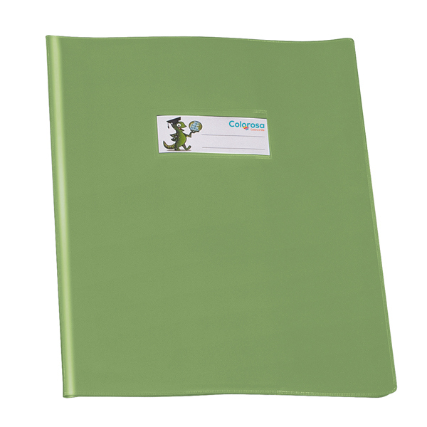 Coprimaxi in pvc lucido 220 my, formato 21x30 cm, con alette e tasca portanome. Verde chiaro.