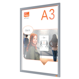 Questa soluzione per la segnaletica, stabile e sicura, ha un pannello posteriore che si attacca saldamente al muro con montaggio ad angolo e ti permette di sostituire il contenuto senza rimuovere la cornice dal muro.