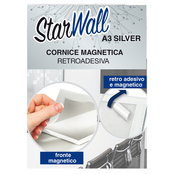 Cornice Adesiva Starwall con Pannello Frontale Magnetico in Pvc Trasparente Antiriflesso a Marchio Starline. Retro Adesivo e Magnetico.
