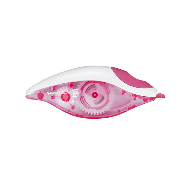 Impugnatura ergonomica in colori assortiti e morbida gomma. Nastro in materiale polimerico. Punta girevole. Confezione assortita in 4 colori verde, rosa, viola, azzurro. Formato 5mmx8,5mt.