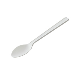 Cucchiaino realizzato in CPLA , ovvero PLA Cristallizzato, polimero derivato del mais resistente fino a 85 gradi C. Biodegradabile e compostabile secondo norma EN13432. - Dimensioni : 12,5 cm - Peso unitario: 1.82 gr - Colore: bianco.