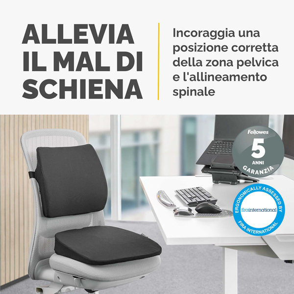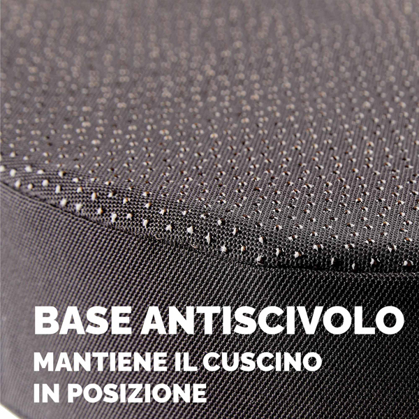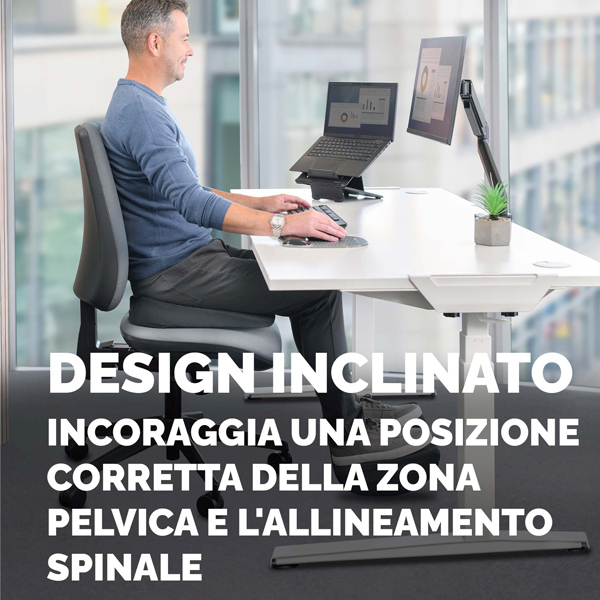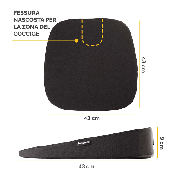 Il design a cuneo favorisce il corretto posizionamento pelvico e l'allineamento spinale per aiutare a ridurre il disagio alla schiena. Il discreto taglio per il coccige nascosto nella base aiuta ad alleviare la pressione alla base della colonna vertebrale. Maniglia di trasporto integrata per un facile trasporto ovunque tu lavori. Schiuma realizzata con il 93% di materiale riciclato pre-consumo, con conseguente riduzione dell'impatto ambientale rispetto a una schiuma vergine. Rivestimento in tessuto realizzato al 100% in poliestere riciclato post-consumo. Ergonomicamente testato da FIRA International come adatto allo scopo.Dimensioni: 9x43x43 cm.