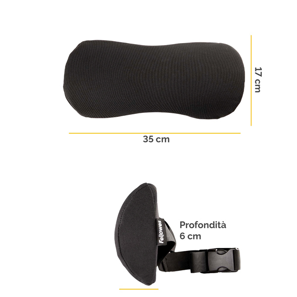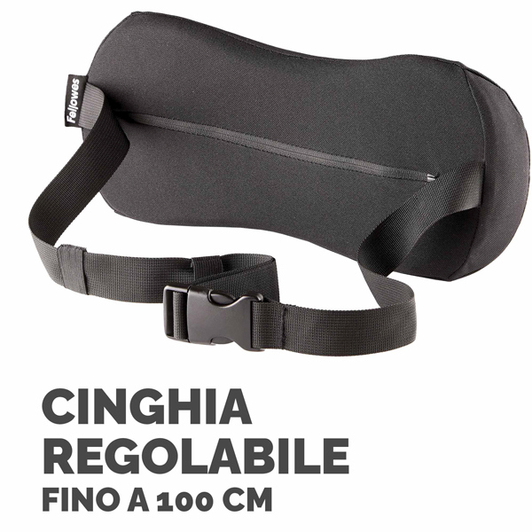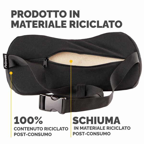 Progettato per aiutare a ridurre il disagio alla schiena fornendo supporto e incoraggiando una corretta postura ergonomica. La cinghia regolabile facile da usare mantiene il supporto saldamente in posizione. Design compatto per un facile trasporto ovunque tu lavori. La schiuma contiene contenuto riciclato post-consumo da materassi. Rivestimento in tessuto realizzato al 100% in poliestere riciclato post-consumo. Dimensioni 17x 35 x 6 cm.