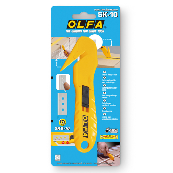 Cutter OLFA per imballaggi, per tagliare cellophane, regge e nastri in plastica; lama reversibile a filo unico con 4 punti di taglio; in blister; utilizza lame cod. SK10B Cutter antinfortunistico OLFA SK-10 e' dotato di lama incassata nell'involucro di plastica, ideato per evitare tagli accidentali. Angolo di taglio singolo per garantire un'impugnatura e operativita' sicura. Manico in acetato resistente agli urti. Lama realizzata in acciaio al carbonio per garantire maggiore durata e affilatezza. Inoltre ogni singola lama puo' essere utilizzata 4 volte reinserendola nella specifica sede interna del cutter. Il cutter viene fornito con una lama. Dimensioni: 9,7x1x22 cm.