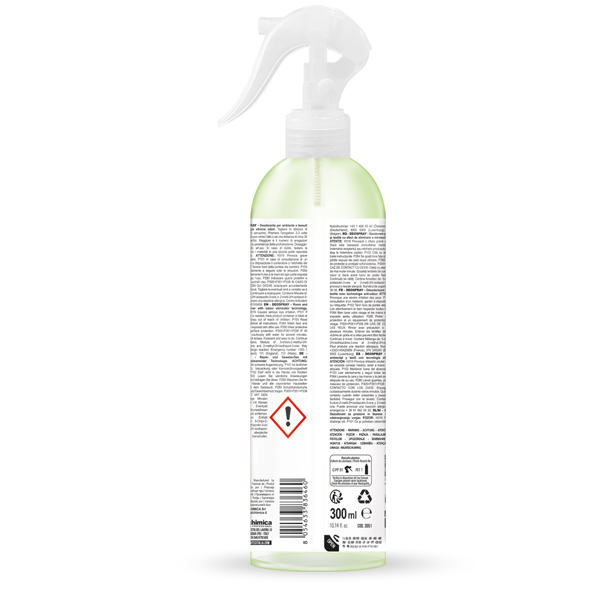 DEO SPRAY Muschio Bianco Philosophy 300ml. Deodorante per ambienti e tessuti. La sua particolare formulazione neutralizza le molecole dei cattivi odori e garantisce una persistente profumazione negli ambienti trattati. IMPIEGO: camere d’albergo, bagni, saloni, cucine, interni auto, scarpiere, ripostigli, cucce per animali, moquette e tessuti. MODALITÀ D’USO: Premere l’erogatore 2-3 volte dirigendo lo spruzzo verso l’alto o verso la specifica zona da deodorare. pH 5,5.
