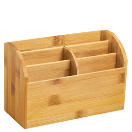 "Accessorio da ufficio indispensabile per lo smartworking o in ufficio. Design elegante per un'atmosfera piacevole.Certificato FSC. 5 scomparti per riporre le tue penne, accessori, tablet e smartphone. Una vernice protettiva rende il prodotto impermeabile. Non contiene chiodi o viti. Materiale: 100% bambu' naturale. Dimensioni : 22,7 x 9,7 x h 15 cm.