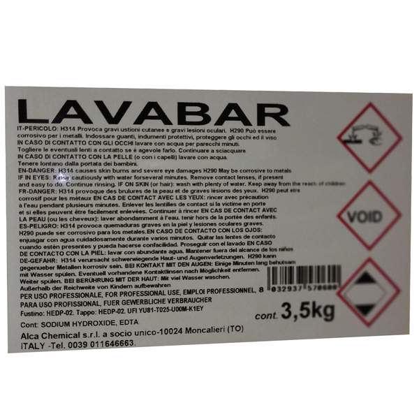 Detergente lavatazzine Lavabar da 3,5lt Alca. Liquido lavatazzine e lavabicchieri. E' un composto a base di sequestranti organici e disperdenti in base acquosa e d'idrossido di sodio. Non contiene fosfati. Riduce la formazione di incrostazioni ed elimina quelli esistenti. La sua azione lavante igienizza le stoviglie rapidamente. Tipologia prodotto: detergente. Contenuto: 3,5 litri. Indicato per: macchine lavabicchieri e Lavatazzine. Codice produttore: ALC851. Marca Alca.