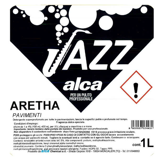 Jazz norah, detergente ad alta profumazione con fragranza dolce speziata. Miscela neutra (ph 7,5) ad alto tenore di profumo con agenti sinergici in base acquosa adatta a lasciare un'atmosfera gradevole nell'ambiente in cui si e' lavorato. Consigliata per luoghi chiusi soggetti a passaggio frequente di persone. Adatta per le pulizie di manutenzione di tutte le superfici lavabili. Prodotto poco schiumoso, adatto all'uso sia manuale che a macchina senza risciacquo, lascia le superfici brillanti e profumate, senza residui ne' aloni. In flacone da 1 litro.