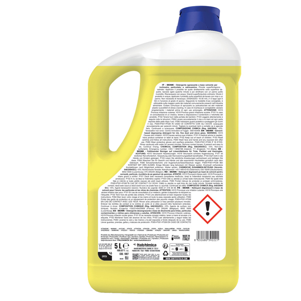 Detergente sgrassante a base solvente per inchiostro, colla e particolato (smog e fuliggine), specifico per la pulizia senza risciacquo e senza aloni di segni di penna, pennarello indelebile, inchiostro, timbri, graffiti, unto, grasso, colla. Ideale l'impiego su: scrivanie, acciaio, superfici in plastica e tutte le superfici dure resistenti ai solventi. Non profumato. In trigger da 750ml. Modalita' d'uso: erogare il prodotto direttamente sulla superficie da pulire, lasciare agire qualche minuto, e poi strofinare con un panno pulito inumidito. Pronto all'uso. pH: 11. I tensioattivi contenuti sono biodegradabili secondo i criteri definiti dalla Direttiva Europea 648/2004/CE e successive modifiche. Prodotto conforme ai C.A.M. (DM 29 gennaio 2021, in GU n. 42 del 19 febbraio 2021).