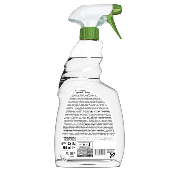 Detergente Green Power Vetri 750ml Sanitec. Detergente multiuso professionale per la pulizia di vetri, cristalli, specchi e parti cromate. Rende le superfici brillanti e profumate di pulito senza lasciare aloni. La sua formulazione, basata sull'utilizzo di tensioattivi di derivazione naturale, e' stata studiata per garantire prestazioni elevate. La dose consigliata consente di risparmiare e ridurre al minimo l'impatto ambientale. Il detergente Green Power Sanitec e' un presidio Medico Chirurgico ed e' idoneo ai piani HACCP. Modalita' di utilizzo: spruzzare il prodotto sulla superficie da trattare, stendere e passare con un panno asciutto fino a completa asciugatura. Prodotto certificato Ecolabel. Aspetto: liquido trasparente. pH: 11. Tipologia prodotto: Detergenti vetri. Contenuto: 750ml. Indicato per Pulire vetri, cristalli, specchi e parti cromate. Codice produttore: 3102. Marca Sanitec.