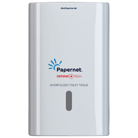 Il dispenser Defend Tech bianco per carta igienica interfogliata e' perfetto per bagni molto piccoli e con media affluenza. Questo articolo permette di ottimizzare lo spreco grazie all'erogazione di un foglio per volta. Materiale plastica. Colore bianco. Defend tech. Tipologia dispenser per carta igienica interfogliata. Lunghezza dispenser 16,5cm. Larghezza dispenser 13,5cm. Altezza dispenser 26,5cm. Capacita' massima 2,5 clips. Antibatterico. Marca Papernet.
