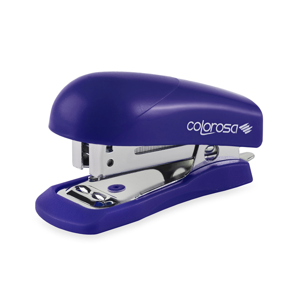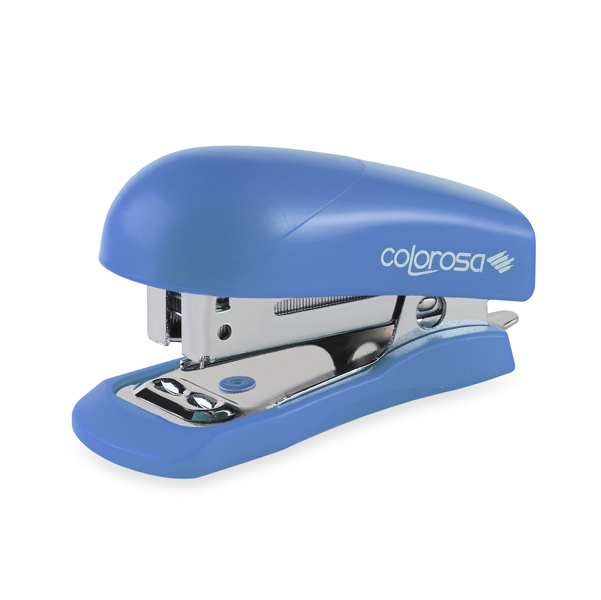 Espositore da banco con 18 cucitrici. Prodotte in materiale plastica ABS e metallo. Cucitura a punto chiuso 12/6, max 10 fogli. Disponibile in 6 colori assortiti.