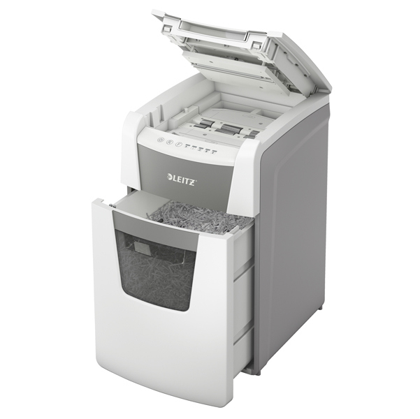 Distrugge fino a 150 fogli A4 con il alimentazione automatica e un massimo di 8 fogli con il alimentazione manuale(80 gr/mq) Esclusiva funzione di svuotamento pulito (le lame si invertono dopo ogni utilizzo) per evitare che frammenti di carta cadano dietro il cestino quando viene estratto Sensore a raggi infrarossi che indica quando il cestino e' pieno e che avvisa quando il cestino e' all'80% della sua capienza Funzionamento ultra silenzioso - per un ambiente di lavoro tranquillo (quando si utilizzano regolarmente i fogli lubrificanti Leitz) Tecnologia anti-inceppamento per una distruzione senza interruzioni - le lame si fermano automaticamente e si invertono quando viene inserita troppa carta Funziona ininterrottamente per 30 minuti e cio' permette di svuotare completamente il vassoio in una sola volta, la modalita' di risparmio ECO si attiva dopo 3 minuti di inattivita' Livello di sicurezza: DinP4 Taglio a frammenti 4x28mm) Ampio cestino estraibile da 44 litri che consente di svuotare completamente il vassoio Pannello Touch: semplice e intuitivo per un facile utilizzo Distrugge anche carte di credito, punti e graffette 2+1 anni di garanzia (anche sulle lame) - registrati per ottenere un anno in piu' Dimensioni (LxHxP): 365x618x430mm.