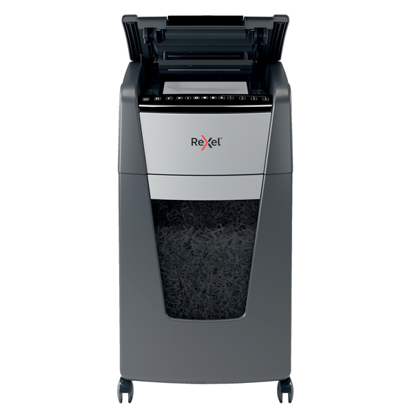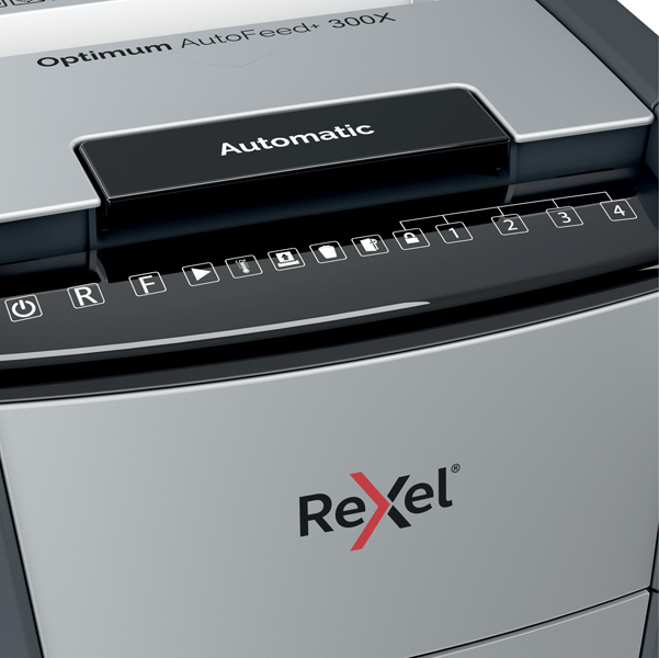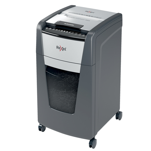 Distrugge fino a 300 fogli di carta A4 (80 gr/mq) con alimentazione automatica e un massimo di 10 fogli con alimentazione manuale. livello di sicurezza: P-4 Taglio a frammenti (4x25mm) Capacita' del cestino 60L - cestino estraibile. Ruote per facilitare gli spostamenti. Tecnologia anti-inceppamento Distrugge carte di credito, punti e graffette Ciclo di lavoro continuo per 60 minuti con raffreddamento a ventola. La modalita' di risparmio energetico si attiva dopo 3 minuti di inattivita'. Pannello di controllo touch con blocco con codice pin per la massima risarvatezza e sicurezza. Livello di rumorosita' 55 dBA ultra-silenzioso Sensore a infrarossi che indica quando il cestino e' pieno 2 anni di garanzia sul distruggidocumenti, 2 anni di garanzia sulle lame Dimensioni (LxHxP): 465x735x490mm Peso: 18.7Kg.