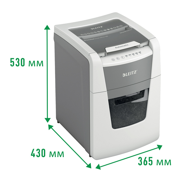 Il distruggidocumenti Leitz IQ e' completamente automatico con un'esclusiva funzione di svuotamento pulito. Cosi' intelligente che lavora da solo senza fare rumore, basta inserire la risma di carta (incl. punti e graffette), chiudere il coperchio e si potra' andare avanti con la propria giornata. Ideale per piccoli uffici. Massima sicurezza e prestazioni eccellenti sono garantite con questo distruggidocumenti con meccanismo anti inceppamento, silenzioso e con ciclo di lavoro lungo (20 min). Distruggi automaticamente fino 100 fogli A4 in frammenti con un livello di sicurezza P5 (2x15mm) rilasciati nell'ampio cestino da 34L. Funzionamento semplice grazie ai comandi touch.