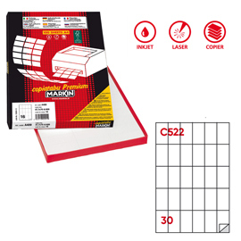 Scatola da 100 fogli di etichette in carta adesiva permanente in formato 21x29,7cm adatti per fotocopiatrici, stampanti laser, inkjet. 30 etichette per foglio.
