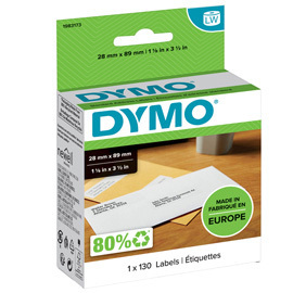 Rotolo etichette adesive permanenti in carta bianca per indirizzi standard 89x28mm. 130 etichette per rotolo. Utilizzabili con le stampanti per etichette labelwriter.