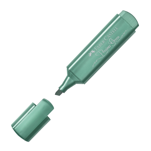 Evidenziatore ideale per tutte le carte comuni e speciali. Inchiostro a base d'acqua, larghezze di tratto: 1, 2 e 5mm. Fusto e cappuccio realizzati con plastica riciclata al 100%. Prodotto certificato a impatto zero. Colori assortiti: glamorous gold, shiny silver, pearl rose, brilliant ruby, magnificent blue, precious green, glorious red,shimmering violet. Colori assortiti metallic - Faber Castell - astuccio 8 colori.