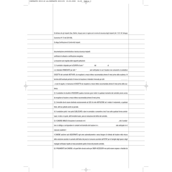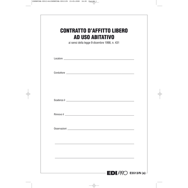 Fascicolo contratto di locazione libero. Formato 29,7x21cm.
